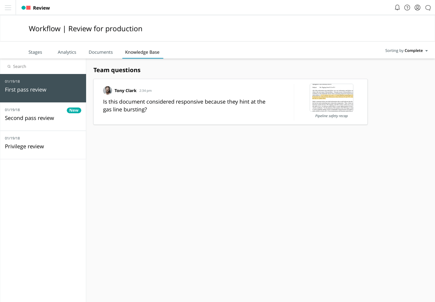A large gap we discovered was that as teams were trying to review documents as quickly and accurately as possible, questions or misunderstandings were common and could severely derail a review process.
